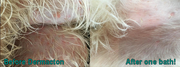 Before and after photos for Dermacton Shampoo Bar for Itchy Dogs.